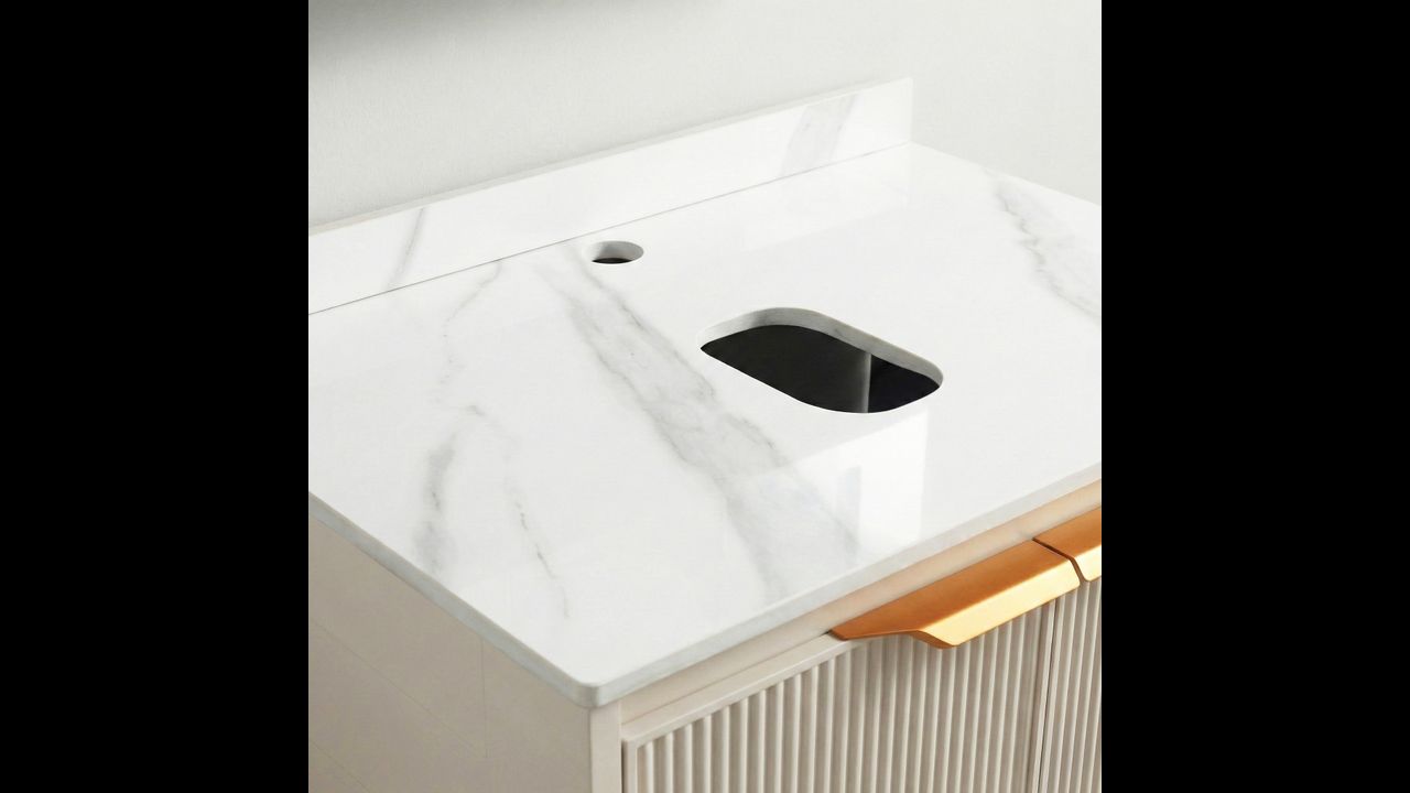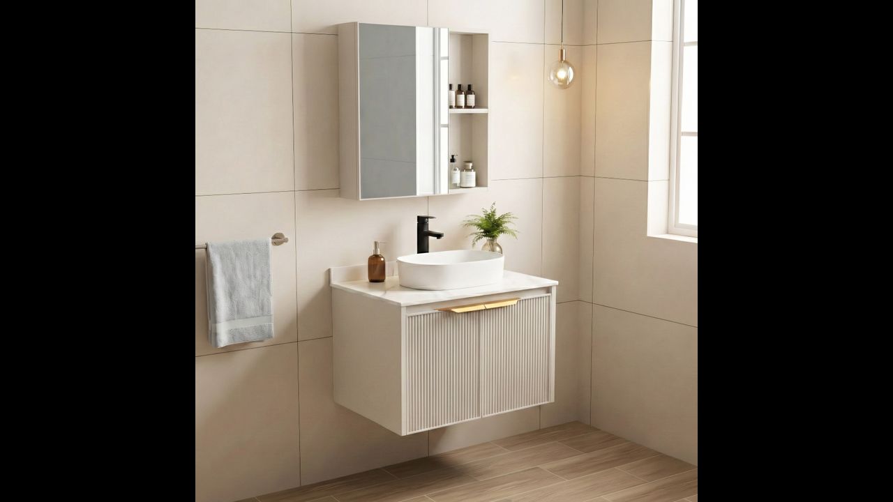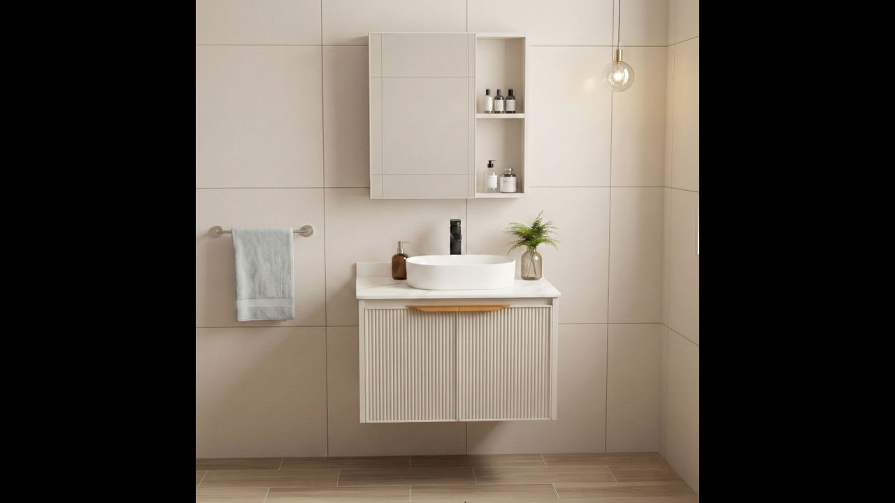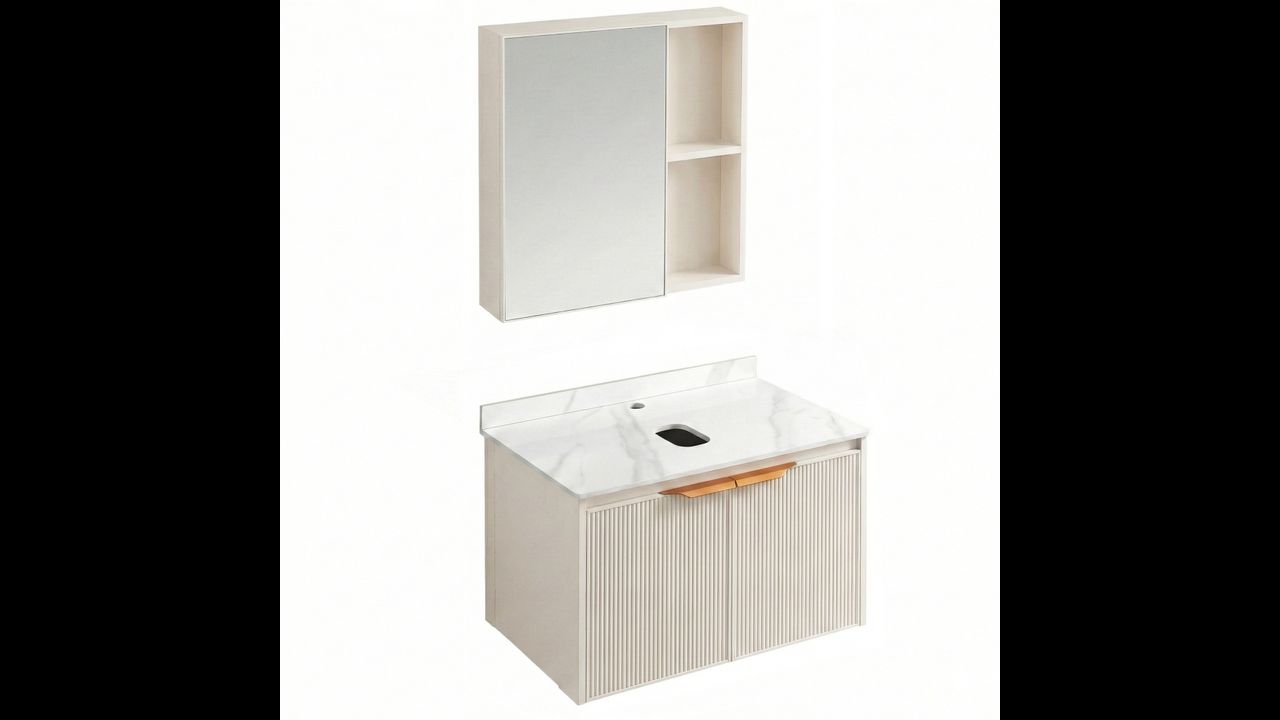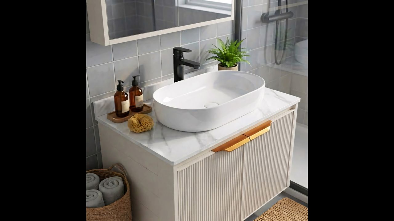 El conjunto Marti es una opción práctica si buscas muebles listos para un lavabo sobre encimera. Gracias a la encimera cerámica y a la estructura de aluminio, es duradero y fácil de mantener.