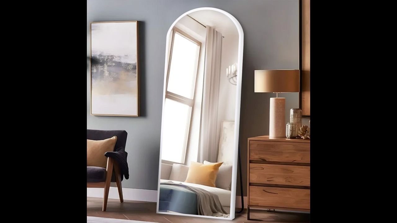 Este elegante espejo blanco de 150×60 cm es ideal para cualquier espacio moderno. Su forma arqueada añade suavidad y estilo al ambiente. Puede colgarse en la pared o colocarse de pie en el suelo, según se necesite.