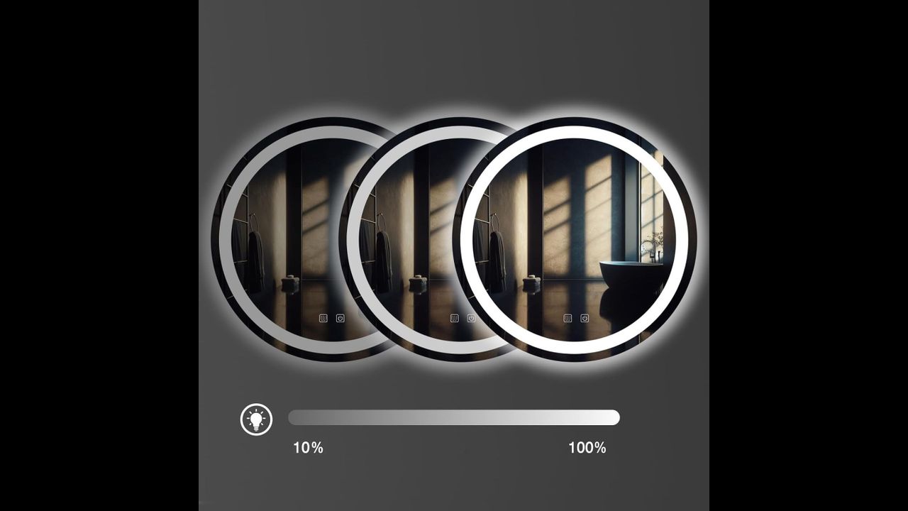 Lustro jest wykonane z najwyższej jakości materiałów, idealnie się prezentuje oraz jest bardzo wytrzymałe. Posiada do wyboru trzy zmieniane dotykowo barwy światła Led – ciepła, neutralną i zimną oraz funkcję podgrzewania zapobiegającą zaparowaniu powierzchni. Przełącznik dotykowy umieszczony w tafli lustra podświetlany jest na niebiesko przy aktywności funkcji. Przewód zasilający w kolorze białym o długości 110cm.