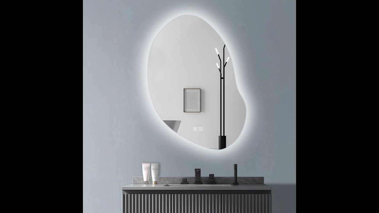 Asymetryczne lustro z podświetleniem Led to idealna propozycja dla tych którzy cenią sobie wygodę użytkowania oraz nowoczesny design. Lustro jest wykonane z najwyższej jakości materiałów, idealnie się prezentuje oraz jest bardzo wytrzymałe. Posiada do wyboru trzy zmieniane dotykowo barwy światła Led – ciepła, neutralną i zimną oraz funkcję podgrzewania zapobiegającą zaparowaniu powierzchni. Przytrzymując palcem podświetlony przycisk na panelu dotykowym możesz regulować intensywność mocy światła. Przewód zasilający w kolorze białym o długości 110cm.