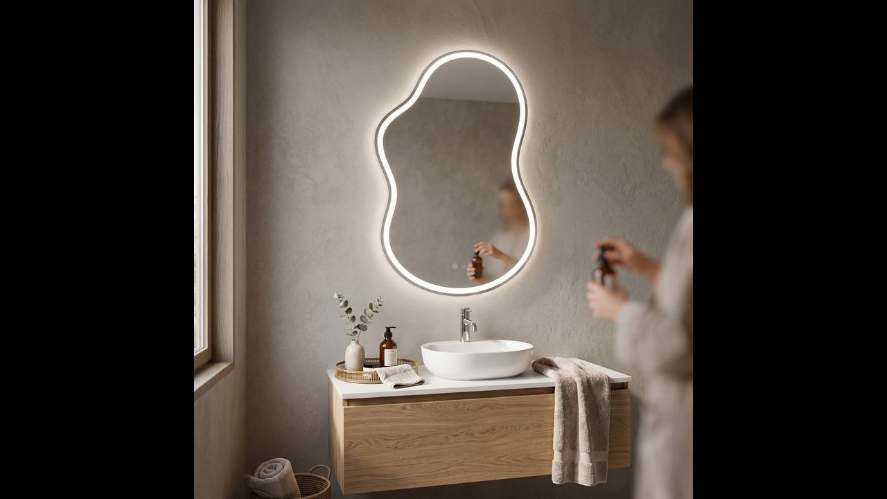 Espejo LED orgánico con iluminación neutra es la combinación de diseño moderno y tecnología práctica que transformará cualquier baño. Su línea asimétrica y suave encaja perfectamente en las últimas tendencias de interiorismo, mientras que el sistema de iluminación incorporado garantiza el máximo confort durante el cuidado diario.