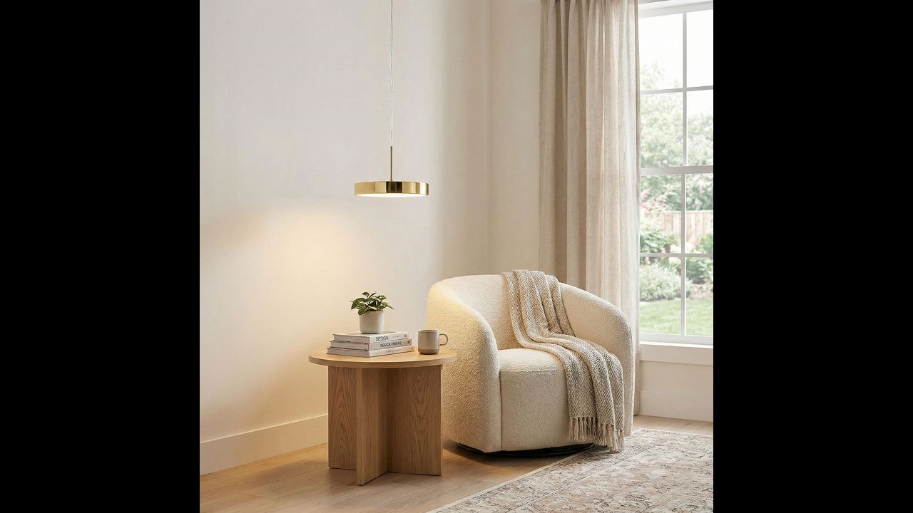 La pantalla de 30 cm proporciona una iluminación uniforme y agradable de la zona donde pasas más tiempo. Es ideal sobre la mesa del comedor, sobre una isla o encimera en la cocina, y también como punto de luz único en el salón o el dormitorio, allí donde buscas una luz cómoda y coherente y quieres ordenar el espacio con una sola forma bien diseñada. El módulo LED integrado de 24 W garantiza una iluminación moderna y eficiente, y la ausencia de bombilla refuerza el carácter minimalista de la lámpara.