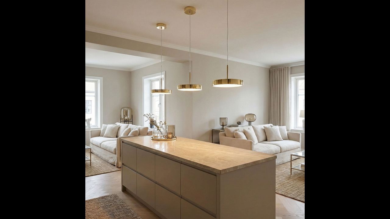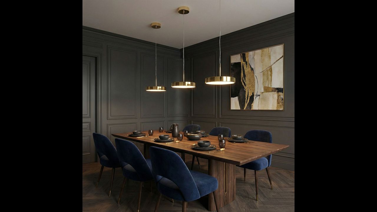 La longitud del cable es regulable, así que puedes ajustar la altura de suspensión según tus necesidades y la altura del techo: más baja para destacar la mesa o la isla, o más alta para mantener la sensación de amplitud en un espacio abierto. El dorado brillante combina muy bien con blanco, beige, negro y mármol, y el cable transparente mantiene la atención en la pantalla y el acabado, logrando un resultado limpio, ligero y muy estiloso.