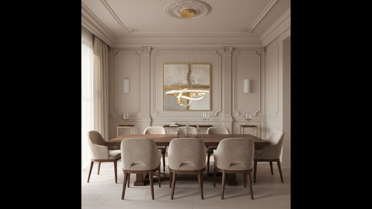 La lámpara es perfecta como elemento decorativo principal en el salón, el comedor o un vestíbulo alto, donde su forma puede apreciarse en toda su magnitud. La suspensión ajustable permite adaptar la altura según el diseño del interior, mientras que los detalles dorados realzan el carácter lujoso del ambiente. Es una elección ideal para quienes buscan una iluminación que combine una estética impactante con tecnología moderna y elegancia atemporal.