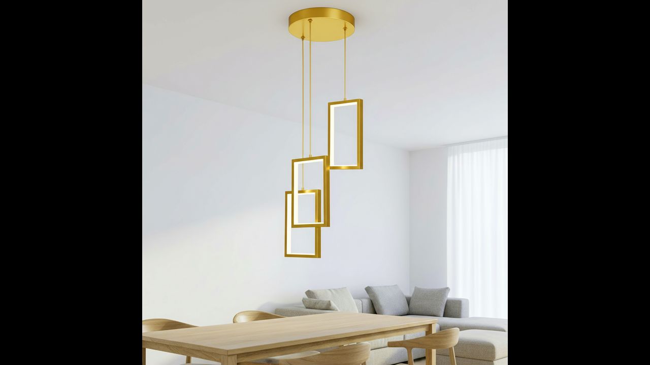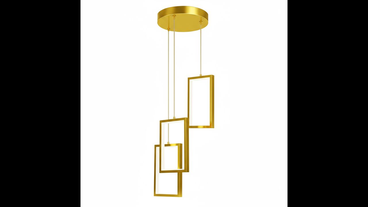 La lámpara colgante moderna con tres brazos rectangulares en acabado dorado es una propuesta llamativa que combina a la perfección la forma minimalista con un carácter elegante. Las formas geométricas suspendidas a distintas alturas crean una composición tridimensional que atrae las miradas y aporta ligereza al ambiente. La iluminación LED integrada emite una luz uniforme y agradable, ideal para colocar sobre una mesa de comedor, en el salón o en un vestíbulo elegante.