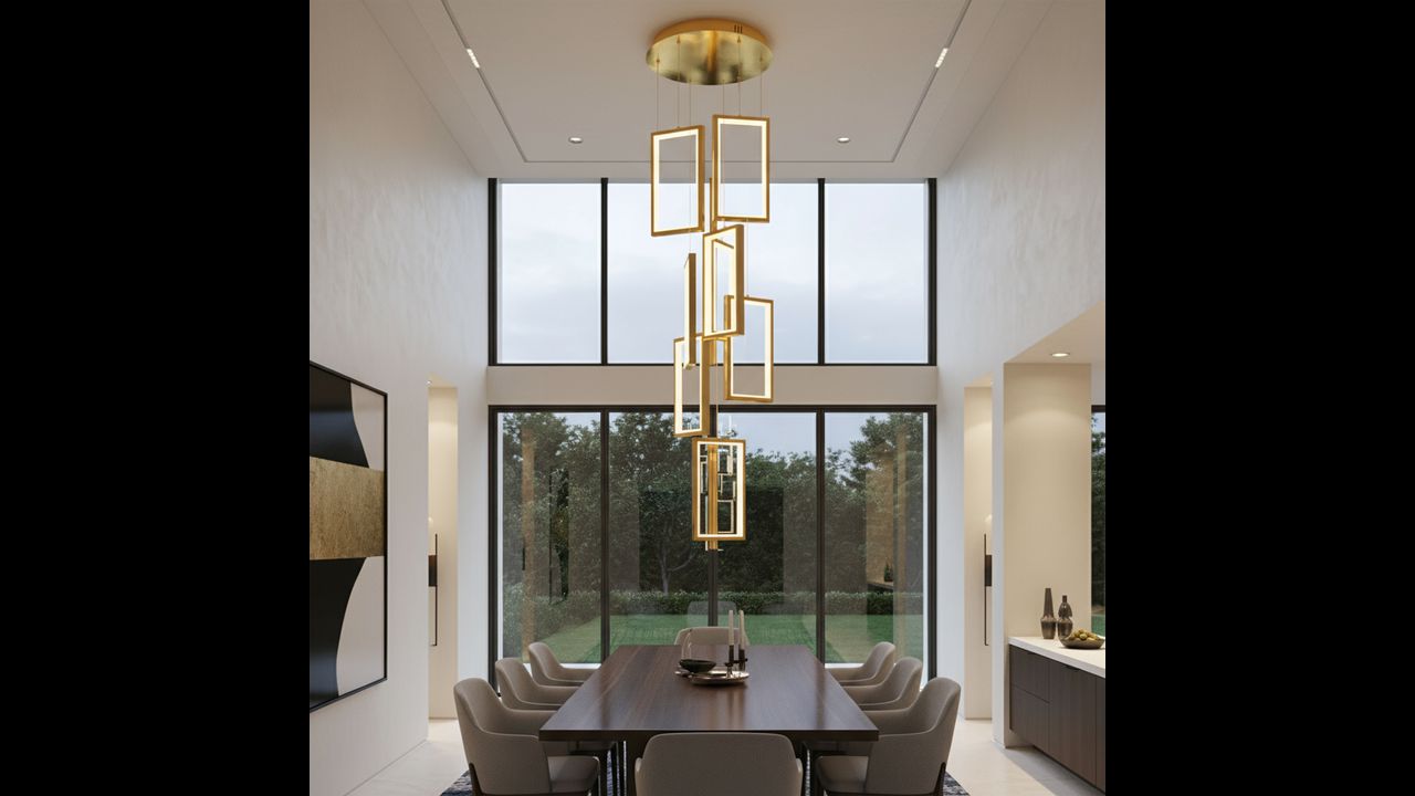 Este modelo es ideal para espacios representativos — sobre una mesa de comedor, en una entreplanta, en un salón de techos altos o en un amplio vestíbulo. El acabado dorado añade un toque de prestigio, mientras que la posibilidad de ajustar la altura de suspensión permite adaptar las proporciones de la lámpara a la arquitectura del interior. Es una iluminación que no solo ilumina, sino que también realza el carácter único de la decoración, convirtiéndose en su punto focal.