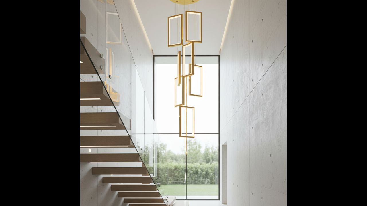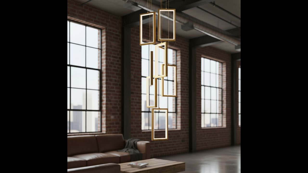 La lámpara colgante moderna con siete brazos geométricos en acabado dorado es una propuesta excepcional para interiores altos donde la iluminación también cumple una función decorativa. Los rectángulos dispuestos en cascada crean una composición tridimensional que atrae la mirada y aporta un toque de lujo al ambiente. La iluminación LED integrada ilumina el espacio de manera uniforme, generando una atmósfera agradable y elegante.
