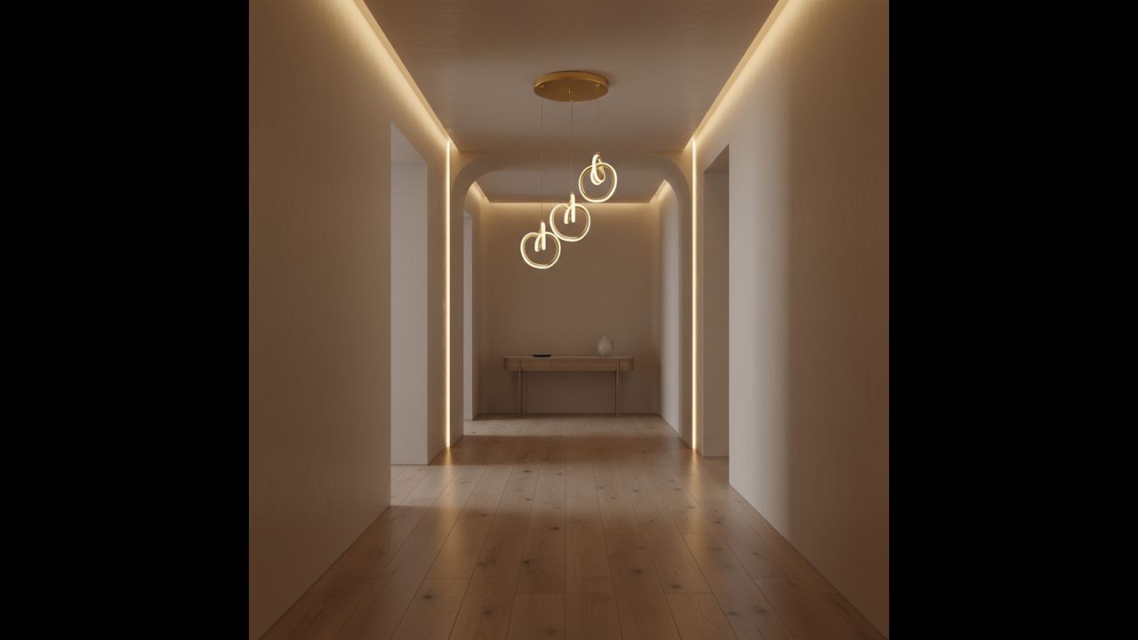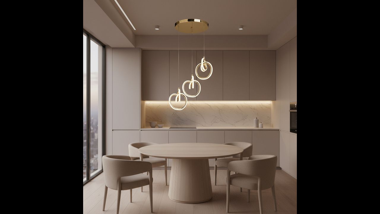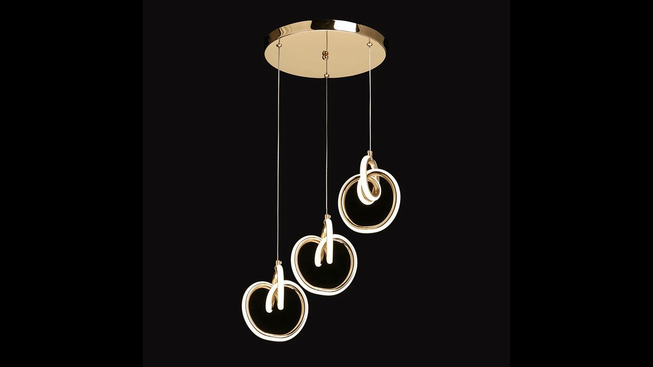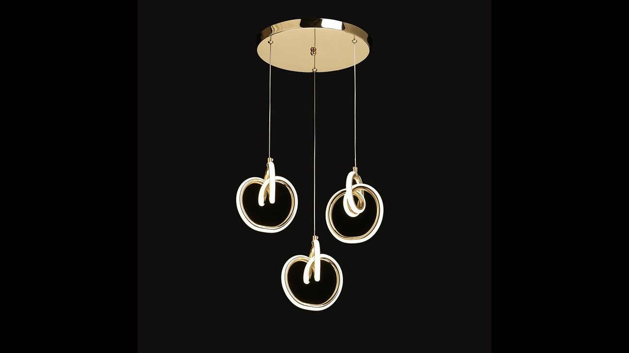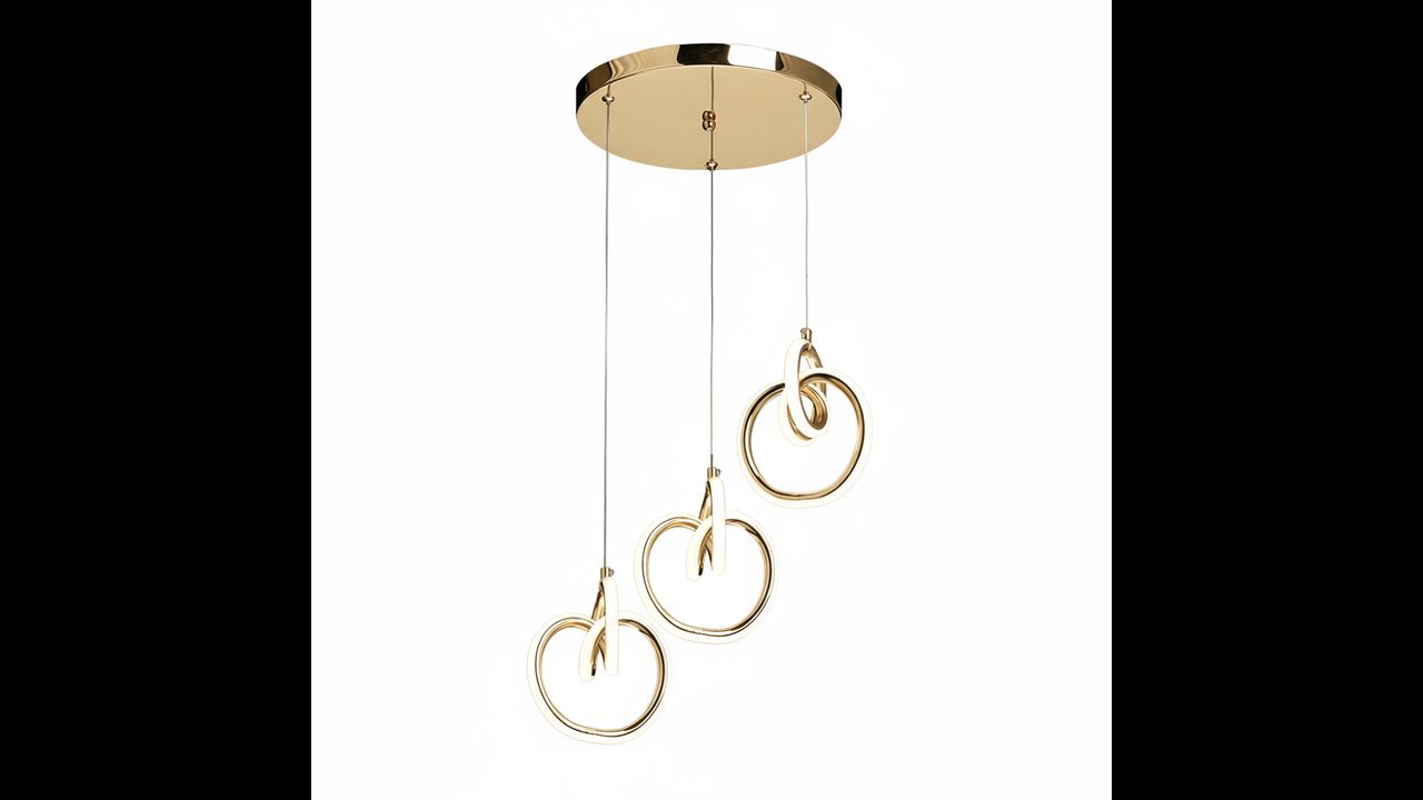 La lámpara colgante moderna con tres aros decorativos en acabado dorado es una propuesta elegante para interiores donde priman el estilo, la ligereza y las formas sofisticadas. Las líneas suavemente curvadas crean una composición escultórica única que luce espectacular sobre la mesa del comedor, en el salón o en un vestíbulo elegante. La iluminación LED integrada difunde la luz suavemente, aportando al espacio una atmósfera acogedora y refinada.