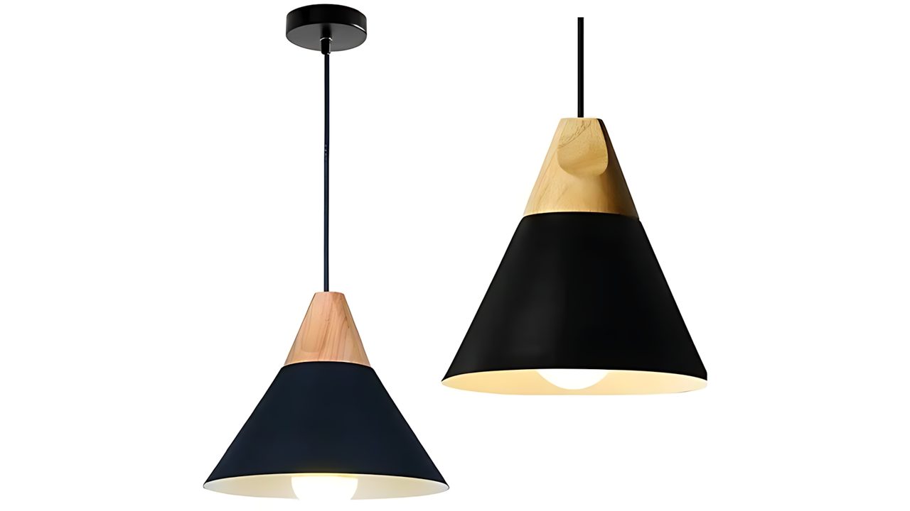 La lámpara está hecha de madera en una combinación de metal junto con una rejilla metálica en el techo. La lámpara tiene la rosca más común diseñada para una bombilla E27. La longitud del cable puede ajustarse para adaptarse a la habitación o a la disposición.
