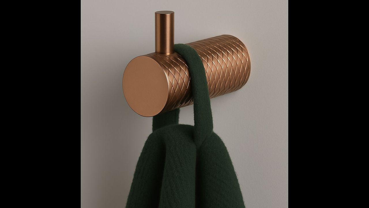 Un elegante toallero o perchero pondrá orden y complementará perfectamente el aspecto de su baño.