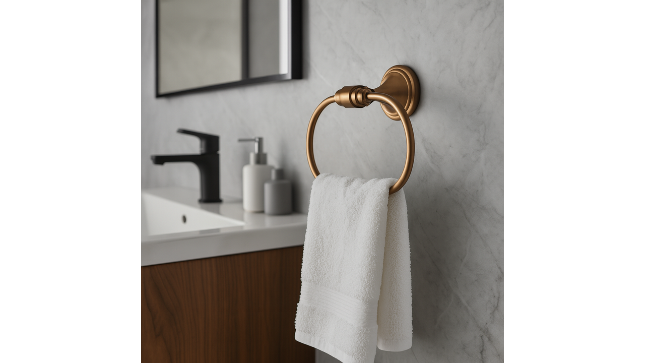 Un elegante toallero o perchero pondrá orden y complementará perfectamente el aspecto de su baño.