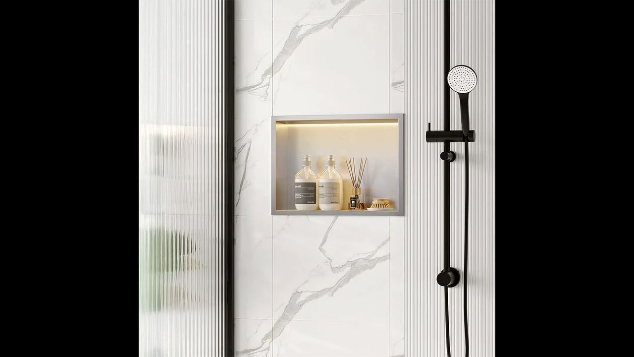 La repisa de baño empotrada con iluminación LED es una solución funcional y estética, perfecta para la ducha, sobre la bañera o en otra zona del baño. Fabricada en acero inoxidable de alta calidad Aisi 304, es resistente a la humedad, la corrosión y el uso intensivo, manteniendo su aspecto durante años.